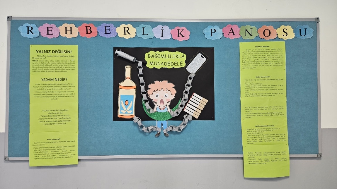 Sağlık, temizlik ve beslenme kulübümüzün hazırladığı bağımlılıkla mücadele konulu panomuzda emeği geçen öğrenci ve öğretmenlerimize teşekkür ederiz.